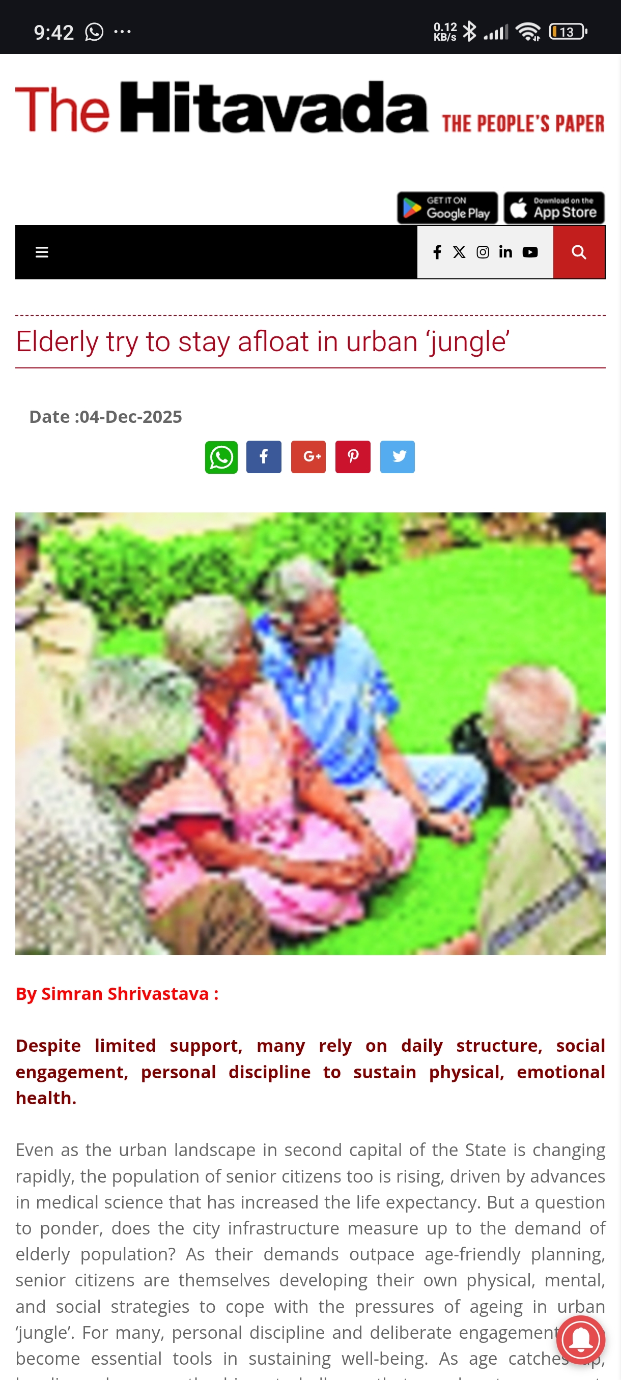 Even as the urban landscape in second capital of the State is changing rapidly, the population of senior citizens too is rising, driven by advances in medical science that has increased the life expectancy. But a question to ponder, does the city infrastructure measure up to the demand of elderly population? As their demands outpace age-friendly planning, senior citizens are themselves developing their own physical, mental, and social strategies to cope with the pressures of ageing in urban ‘jungle’. For many, personal discipline and deliberate engagement have become essential tools in sustaining well-being. As age catches up, ...